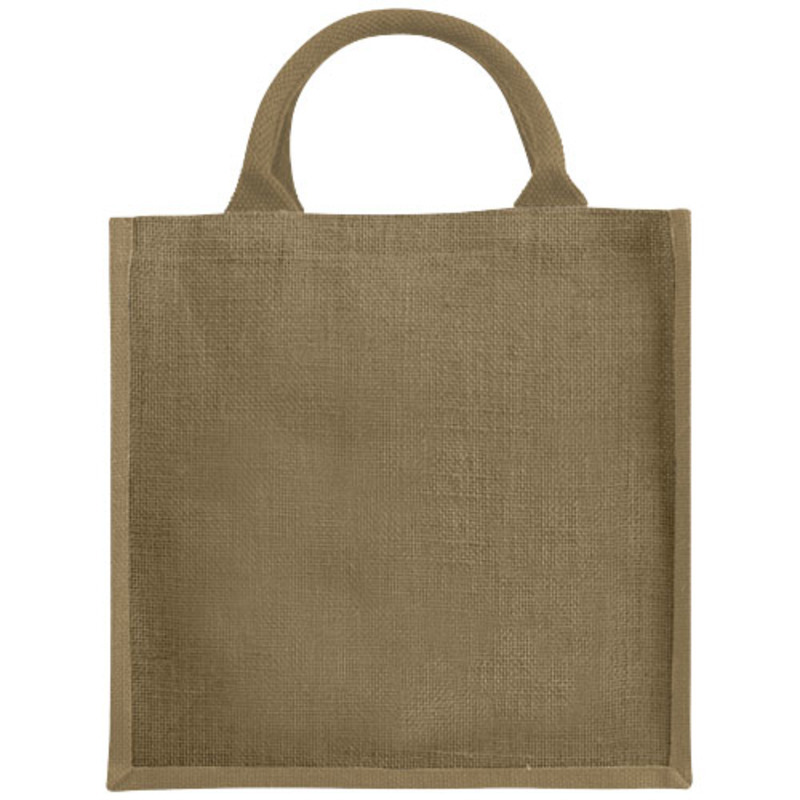 The Chennai tote bag is the perfect partner for trips to the park, beach or grocery store. With its jute material, it is a sustainable choice. The bag features a laminated open compartment and gusset, making it ideal for carrying heavy items. Cotton handles guarantee a good and comfortable grip and additionally the hook & loop closure ensures that all belongings stay safe and secure. Made in India and OEKO-Tex certified. Resistance up to 10 kg weight.