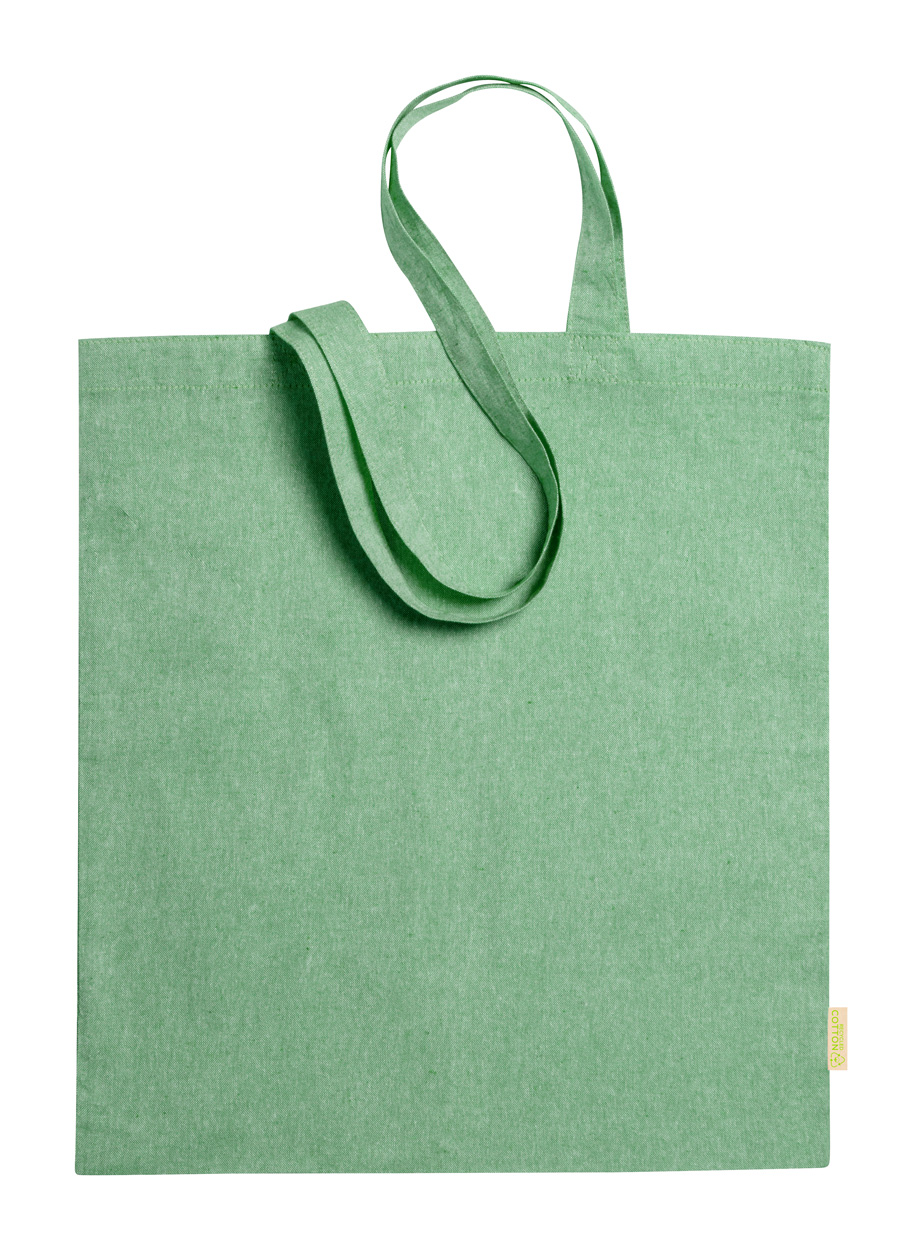 Reusable, recycled cotton shopping bag with long handles. 100% recycled cotton, 120 g/m².