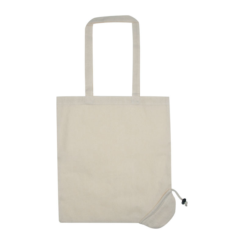 Natural-coloured, foldable shopping bag with long handles, crafted from Oeko-Tex® certified cotton, 100 g/m².