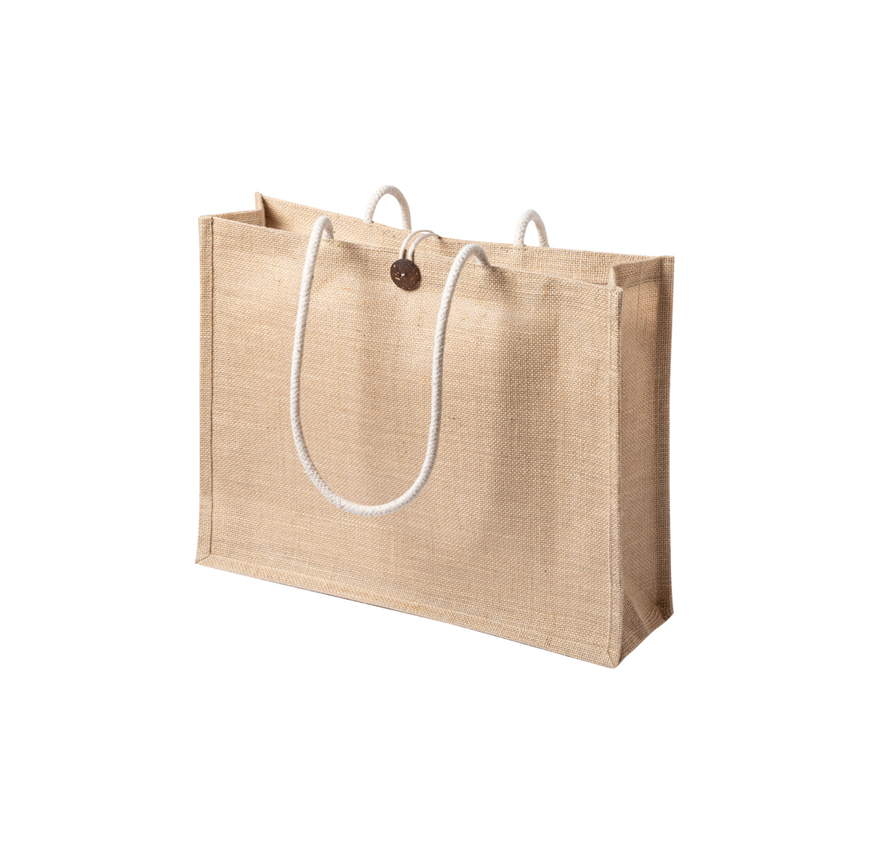 Laminated jute beach bag with braided cotton handles, 320 g/m².
