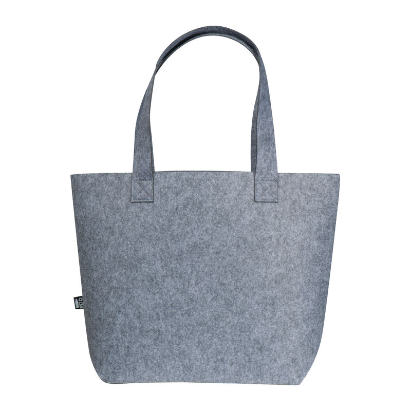 Large shopper made of RPET felt with bottom fold and two carrying handles. This really puts recycled plastics in the spotlight once again. We print your logo on one side.