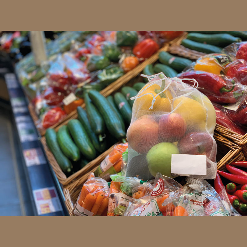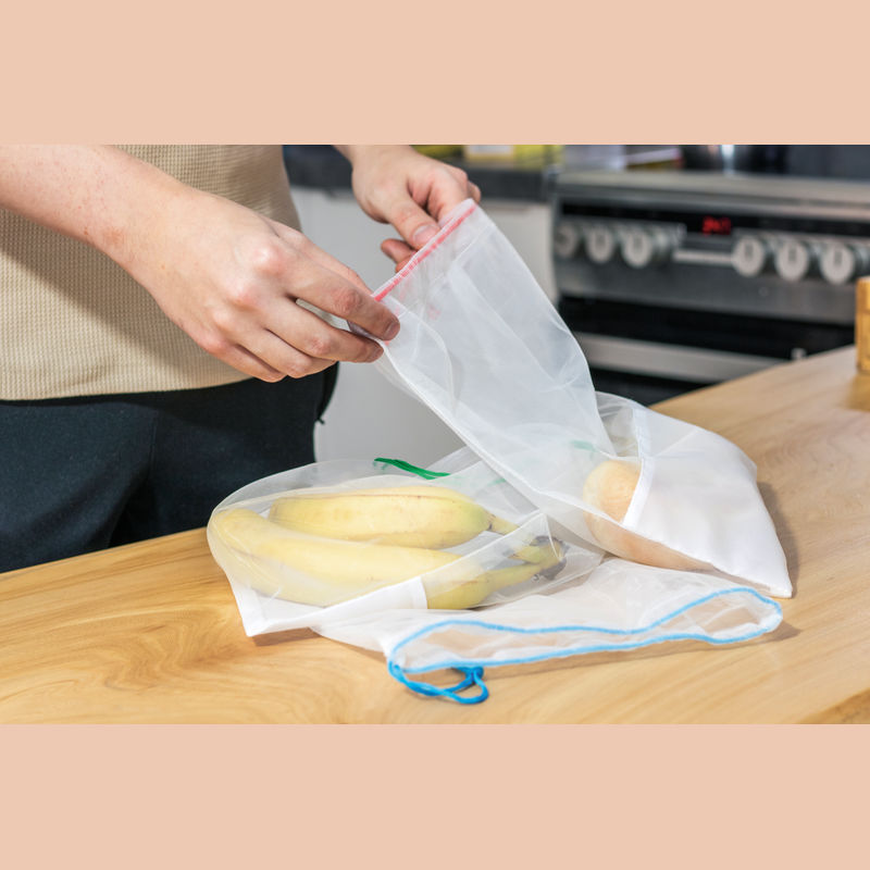 Environmentally friendly, washable and durable fresh net made from polyester. Contribute to plastic waste reduction and use this practical net for the purchase of fruits and vegetables.