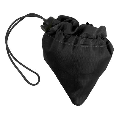 Foldable shopping bag, folded into corner with string and plastic stopper
