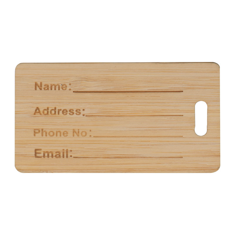 Luggage tag made from sustainable bamboo. We engrave your logo on the back.