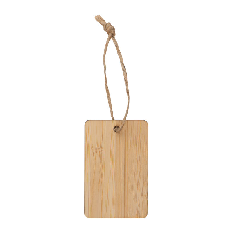 Pendant crafted from bamboo, featuring a cord for hanging. Each item and engraving is unique due to the natural bamboo material.