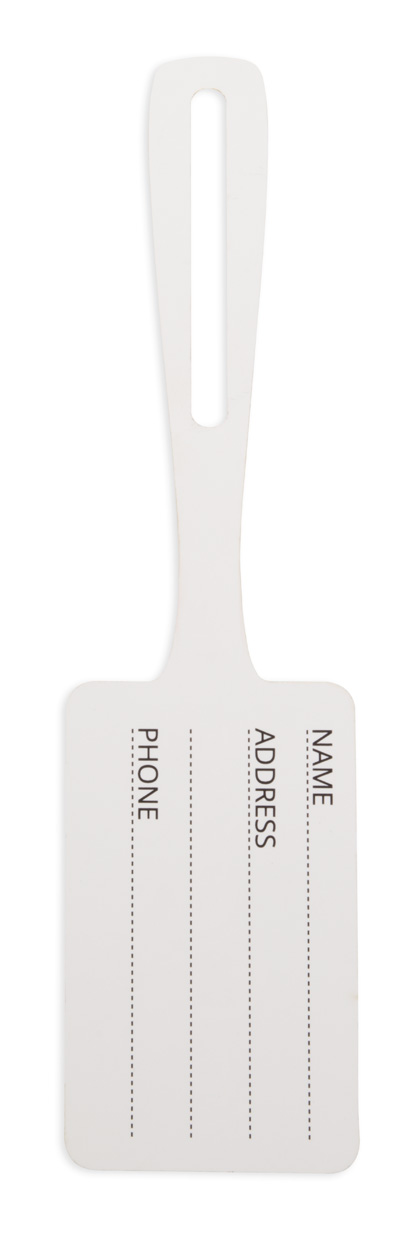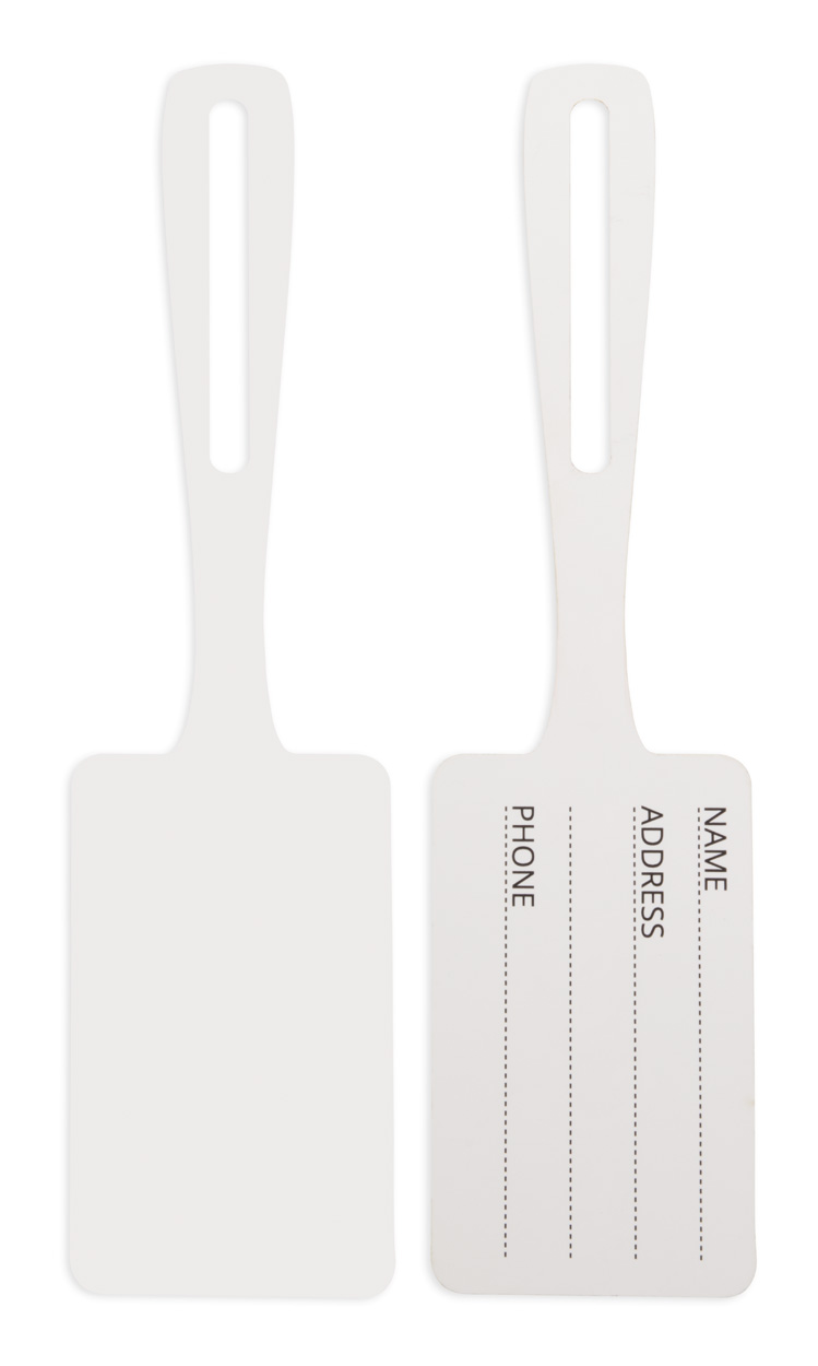 Custom made, water and tearproof paper luggage tag. Price includes full colour printing on front side. MOQ: 250 pcs.