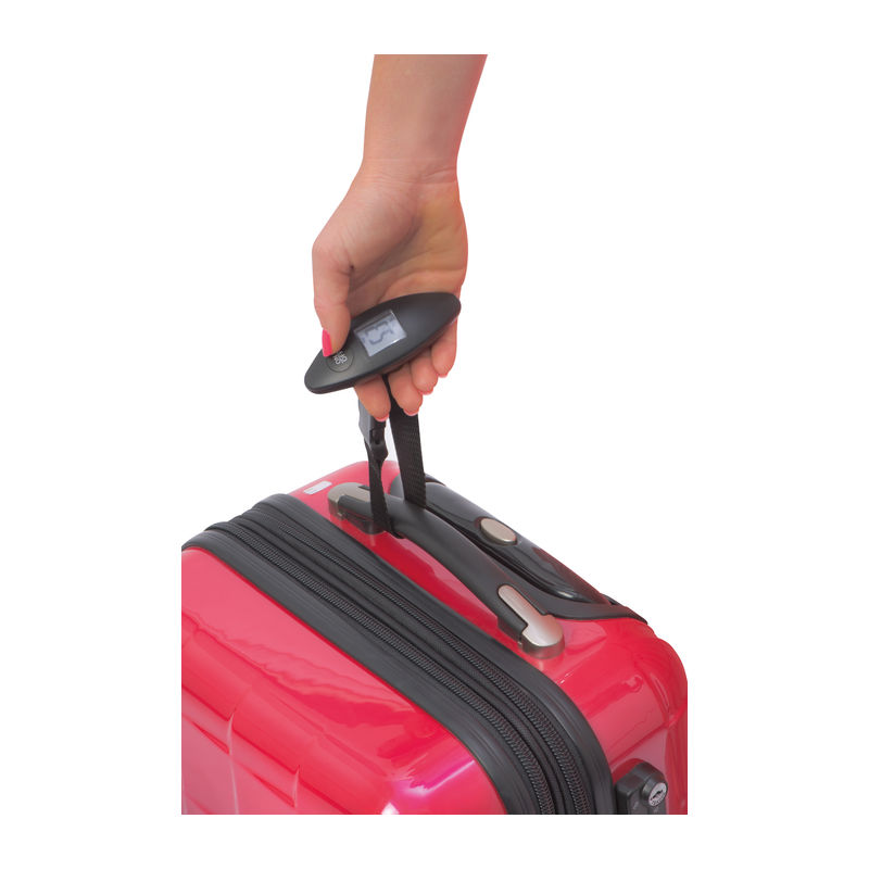 Digital luggage scale with overweight function and maximum capacity of 40kg. You can always check your luggage before travelling. We will print your logo on the scale.