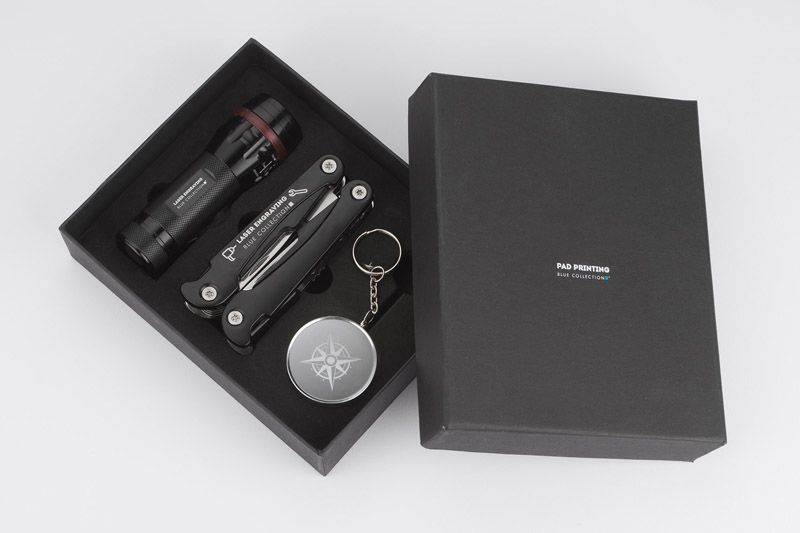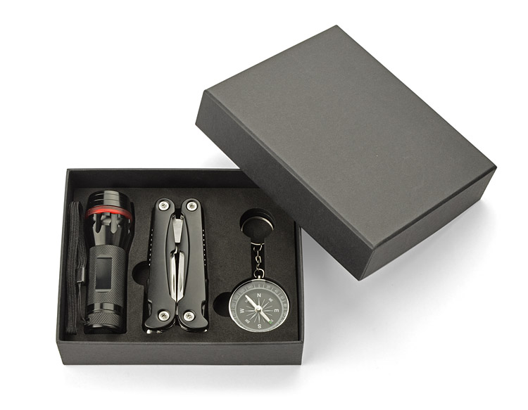 | Dimensions | 177 x 140 x 45 mm (box),⌀ 34 x 105 mm (flashlight); 105 x 45 x 23 mm (multitool); ⌀ 44 x 10 mm (compass) |