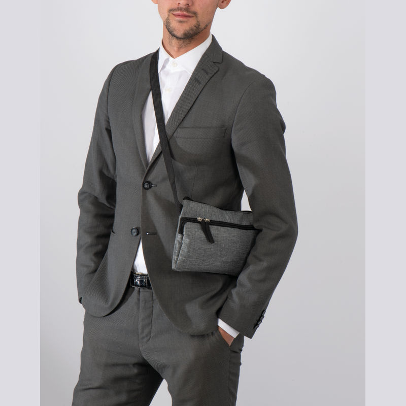 Shoulder bag made of polyester with long carrying strap. The main, front, and inside compartments are securely closed with zippers. You will find extra storage and a sewn-on lanyard to safely keep your keys. Your branding will be printed on the front.