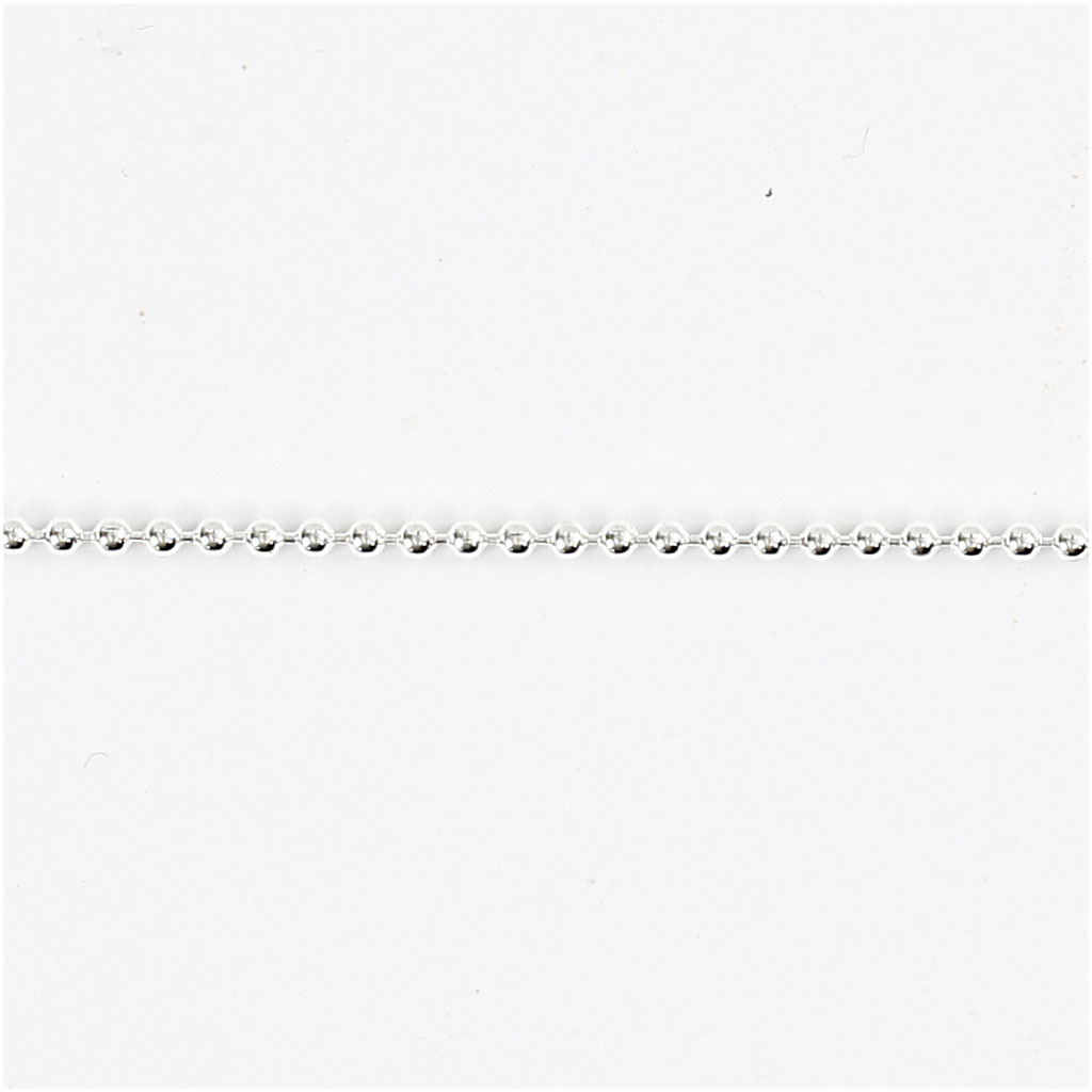 Bead chain including 1 Clasp and 2 pcs. of end caps for mounting. Can be supplemented with jewellery kit - Item No. 100245. Bead Chain, silver-plated, dia. 1,5 mm, 1 m/ 1 pack