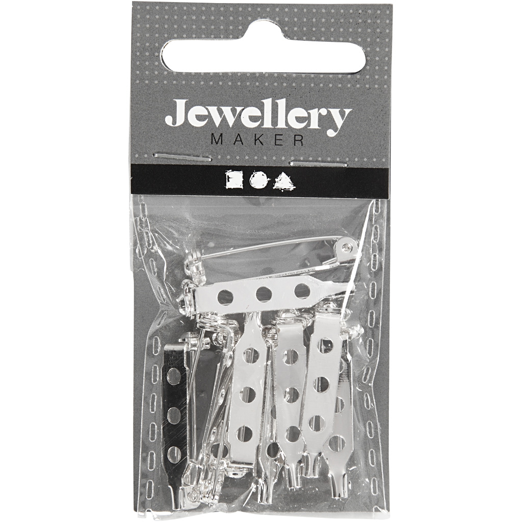 Each brooch back has 2 holes which allow you to wire, sew or glue them on any project - comes with a lockable pin. Brooch Backs, silver-plated, L: 25 mm, 10 pc/ 1 pack