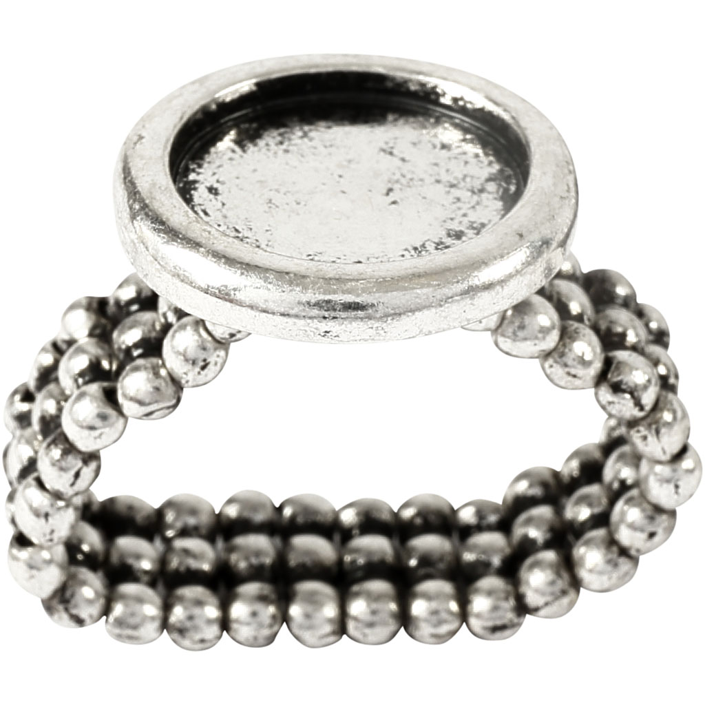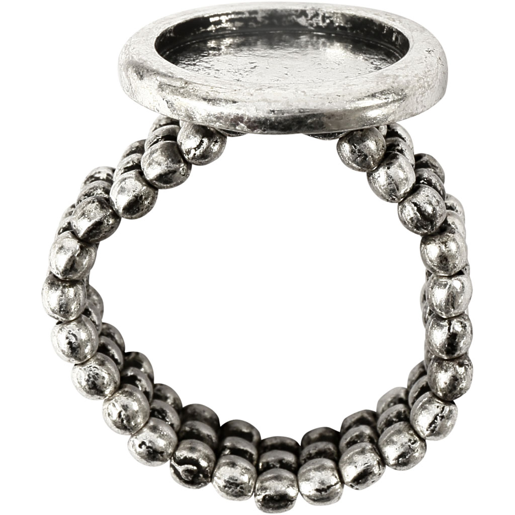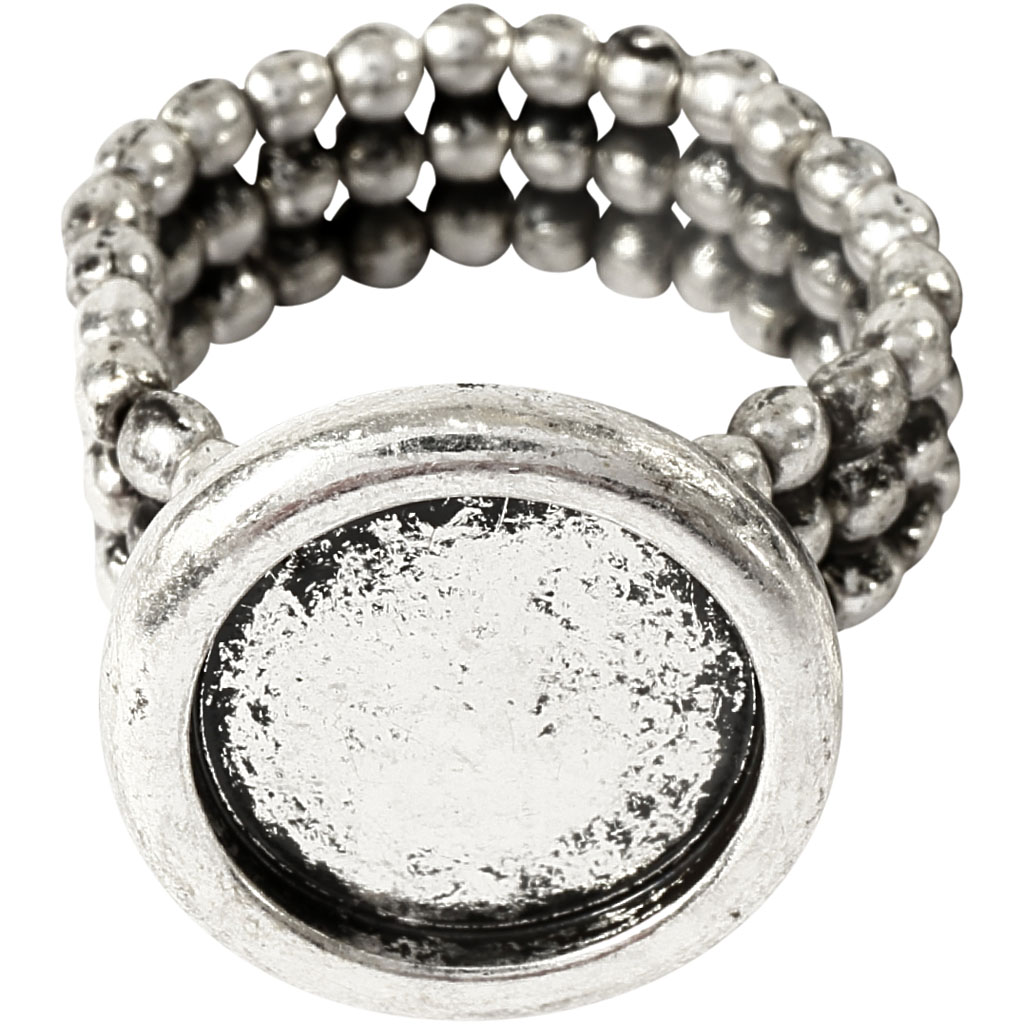 Metal ring with a space for a cabochon. Cabochon Ring, antique silver, D: 19 mm, hole size 14 mm, 1 pc