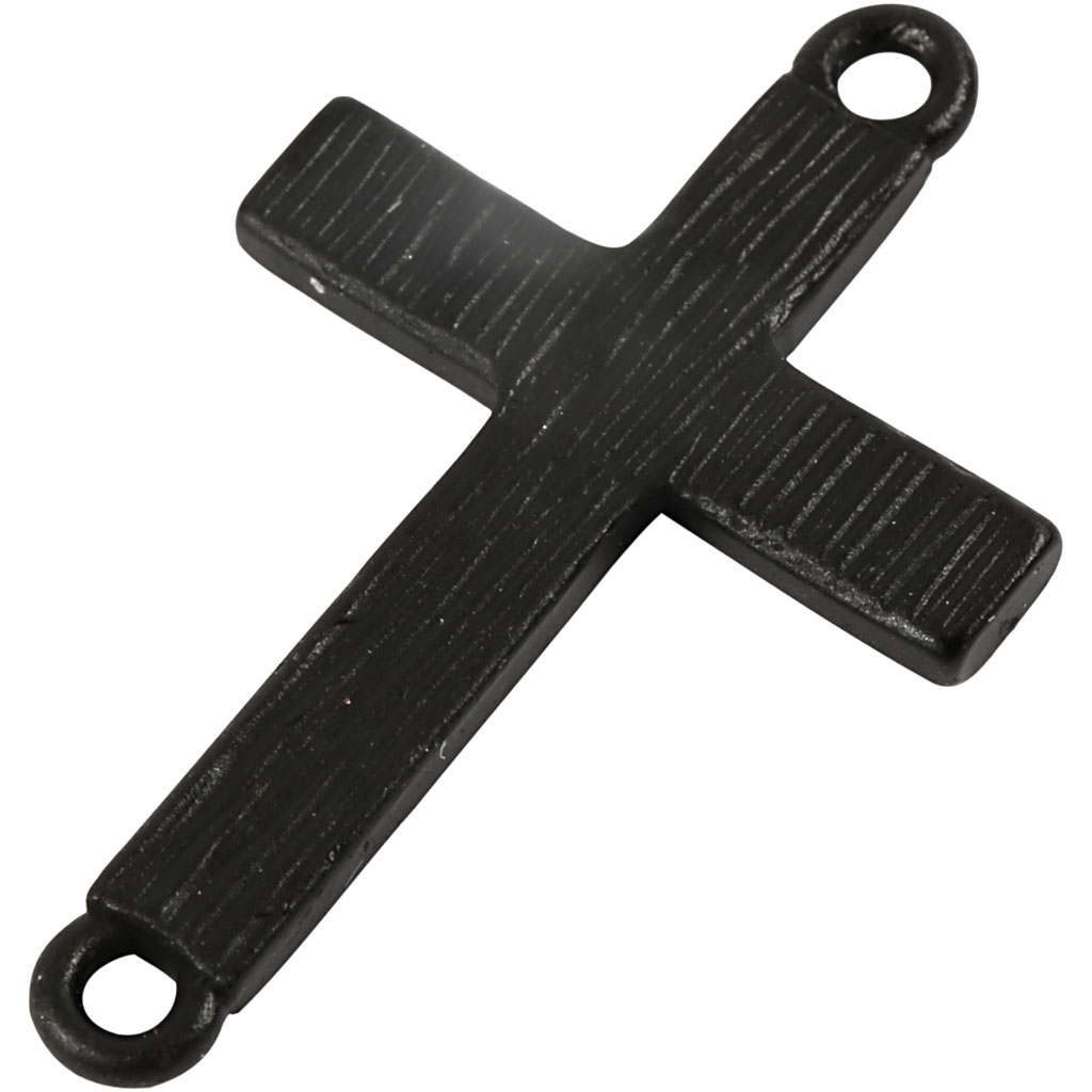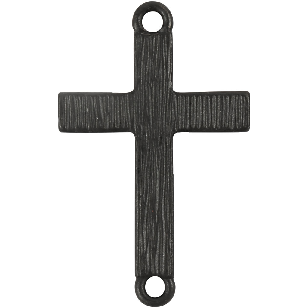 Metal charm with holes at the top and bottom. Cross, black, size 20x30 mm, hole size 2 mm, 4 pc/ 1 pack