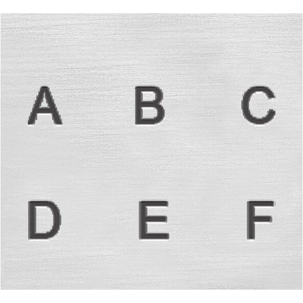 A practical storage box with alphabet embossing stamps of solid steel. Includes upper case / capital letters (A - Z) and 7 special signs. Font: Helvetica. Embossing Stamps, Capital letters, size 3 mm, Font: Sans Serif , 27 pc/ 1 set