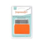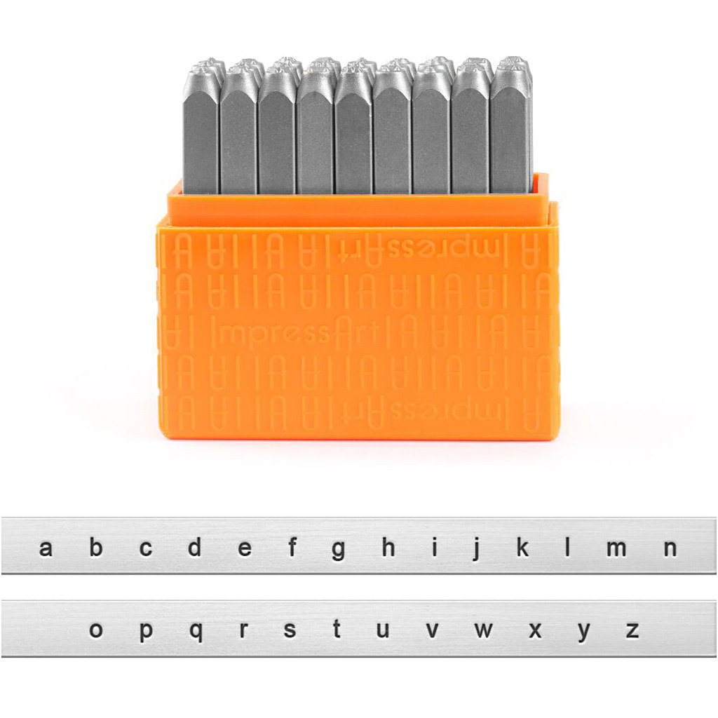 A practical storage box with alphabet embossing stamps of solid steel. Includes lower case (a - z) and 7 signs. Font: Helvetica. Embossing Stamps, Small letters, size 3 mm, Font: Sans Serif , 27 pc/ 1 set