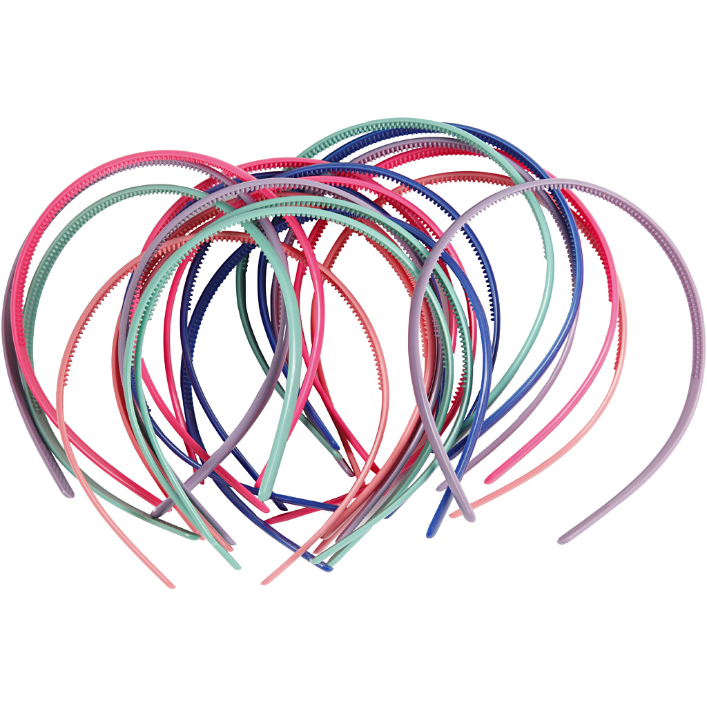 Narrow plastic hair bands. Hair Bands, assorted colours, W: 8 mm, 20 pc/ 1 pack