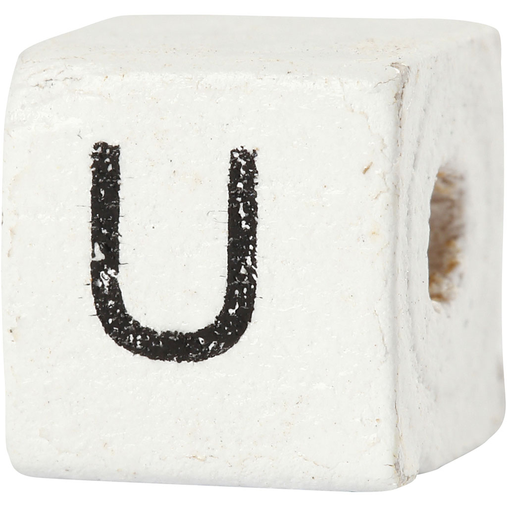 Square wooden bead with letters. Letter Bead, white, U, size 8x8 mm, hole size 3 mm, 25 pc/ 1 pack