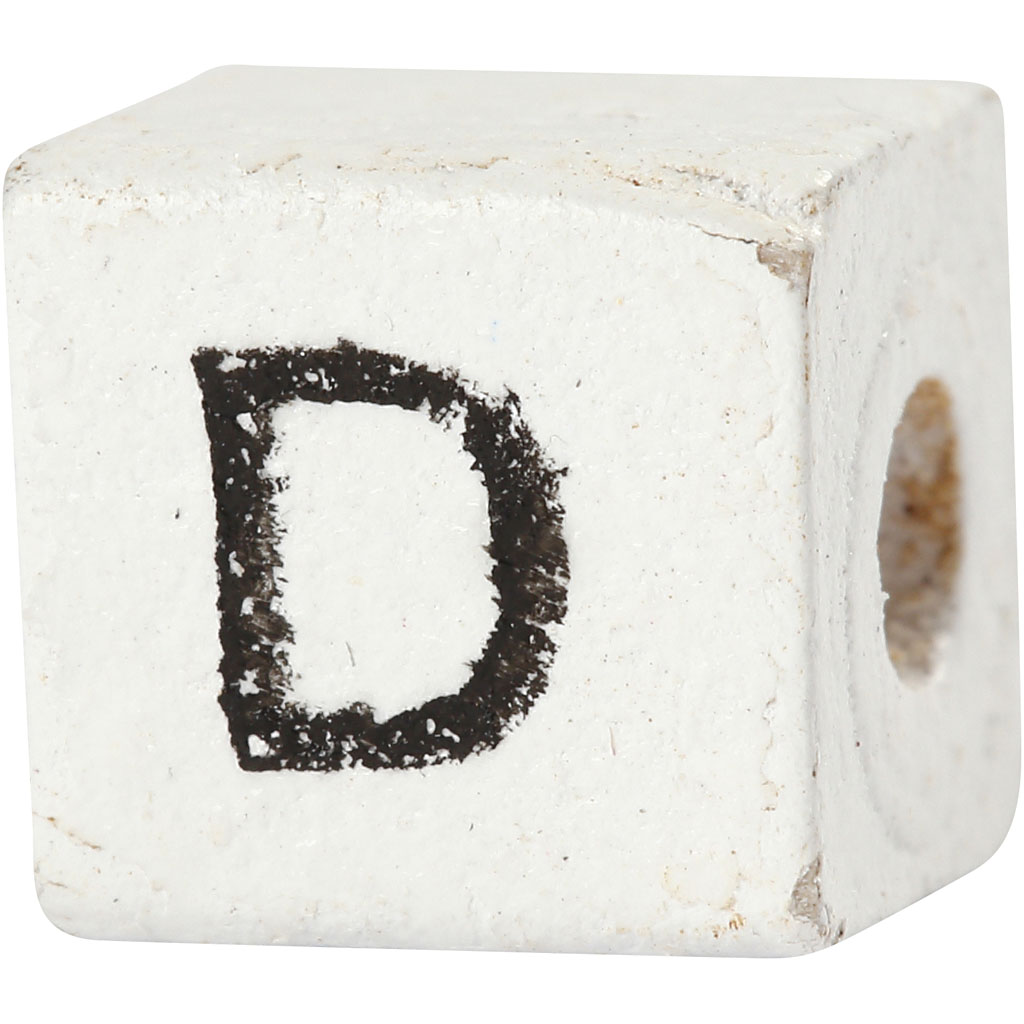Square wooden bead with letters. Letter Bead, white, D, size 8x8 mm, hole size 3 mm, 25 pc/ 1 pack