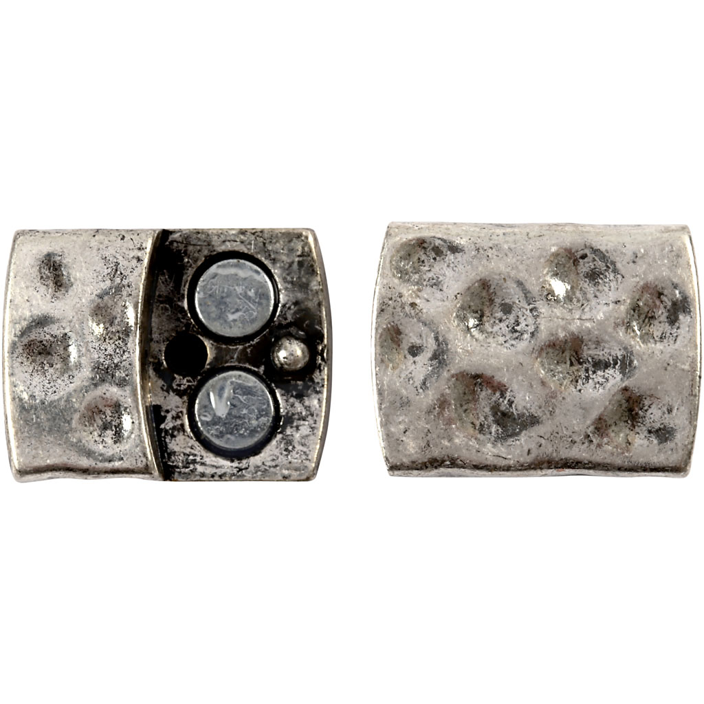 Flat, 2-piece magnetic clasp with a rustic surface. Magnetic Clasp, antique silver, size 7x29 mm, hole size 3x10 mm, 1 pc