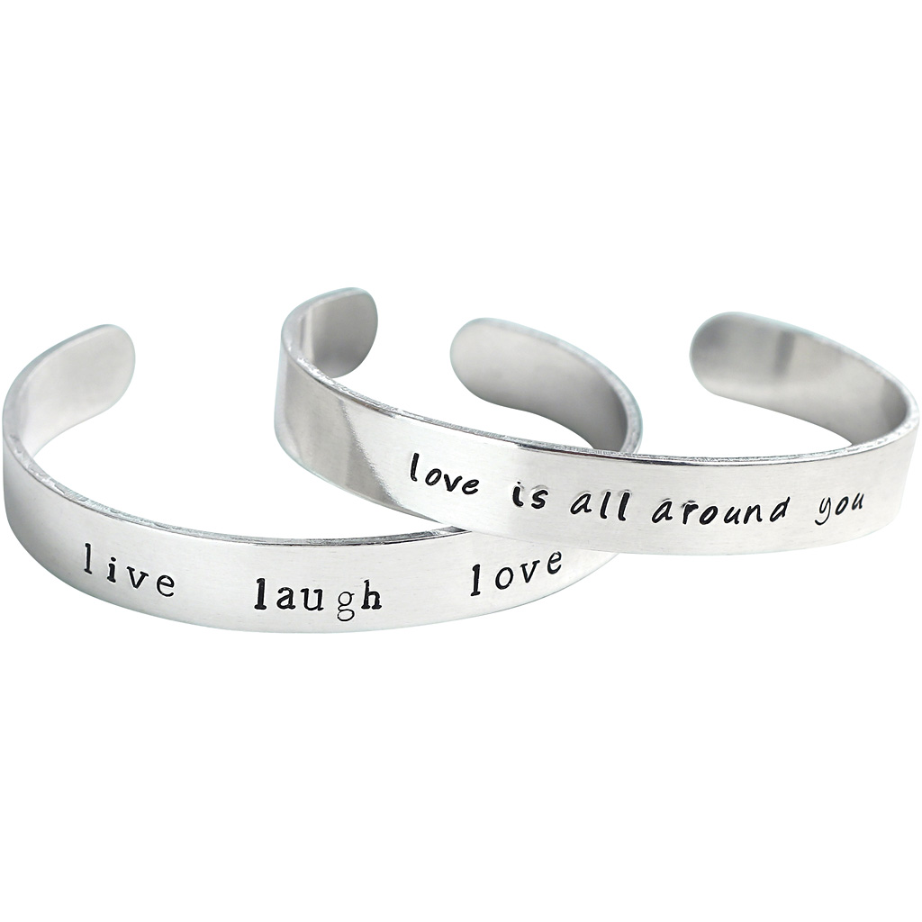 Flat metal bangle bands with rounded ends for use with bending tool (not included). Metal Bands, aluminum, L: 15,2 cm, W: 6 mm, thickness 1,6 mm, 12 pc/ 1 pack