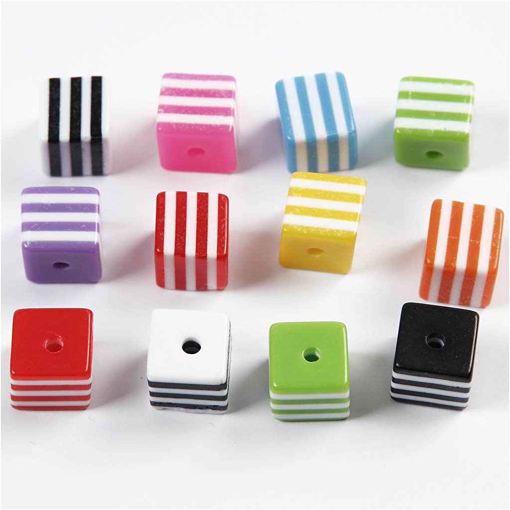 Multistriped mix of resin beads. Multi Mix, 500 g, size 8x8 mm, hole size 2,5 mm, 700 ml/ 1 tub