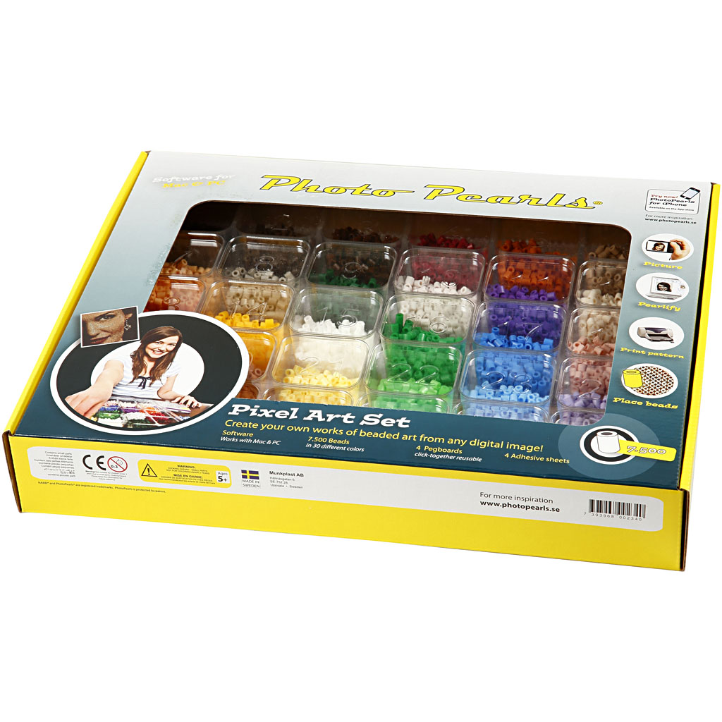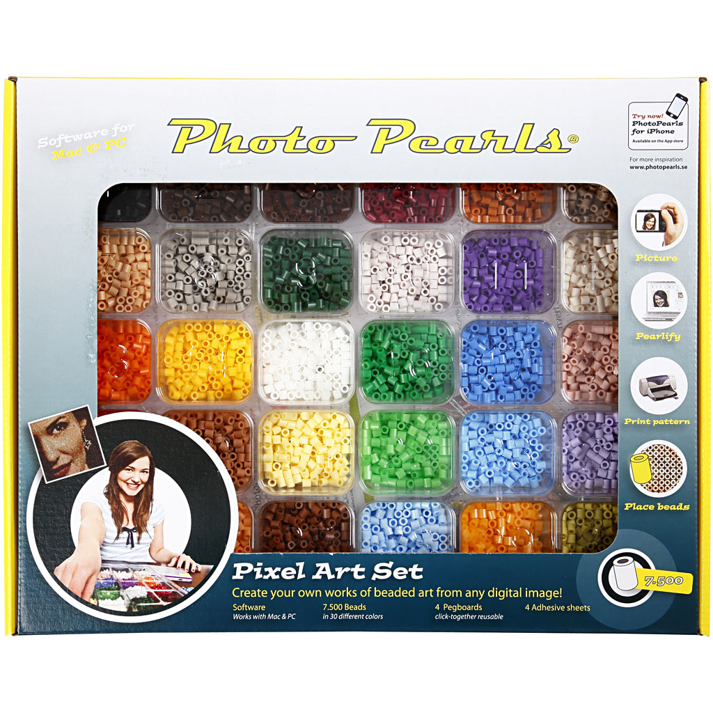 This kit includes original Nabbi PhotoPearls for building images using a computer program. Content: 7500 Nabbi PhotoPearls - 30 colous in box with color codes on the lid, 4 pegboards (15 x 15cm), 4 self-adhesive sheets. PhotoPearls Kit, 7500 pc, medium, 1 set