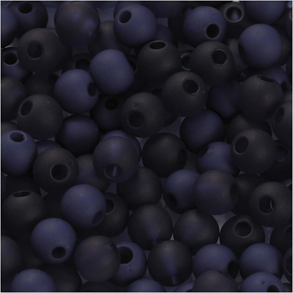 Round plastic beads with matt surface - Mix of semi transparent and solid colour with matt surface. Plastic Beads, blue, dia. 6 mm, hole size 2 mm, 40 g/ 1 pack