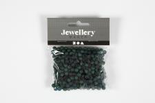 Round plastic beads with matt surface - Mix of semi transparent and solid colour with matt surface. Plastic Beads, bottle green, dia. 6 mm, hole size 2 mm, 40 g/ 1 pack