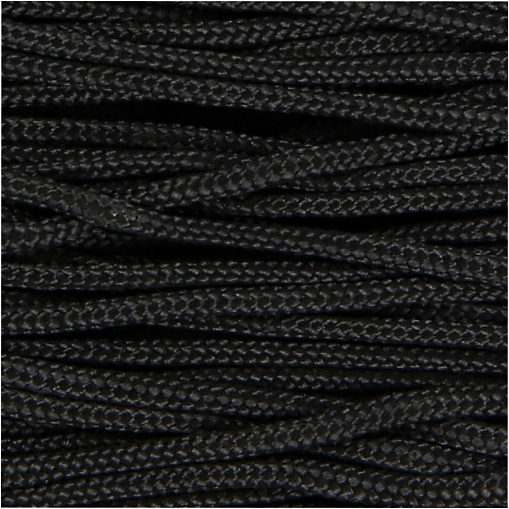 Good quality semi-gloss, solid coloured nylon cord - ideal for macramé. Polyester Cord, black, thickness 2 mm, 8 m/ 1 roll