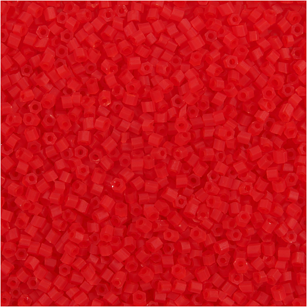 Coloured glass tube beads. Rocaille Seed Beads 2-cut, transparent red, size 15/0 , dia. 1,7 mm, hole size 0,5 mm, 25 g/ 1 pack