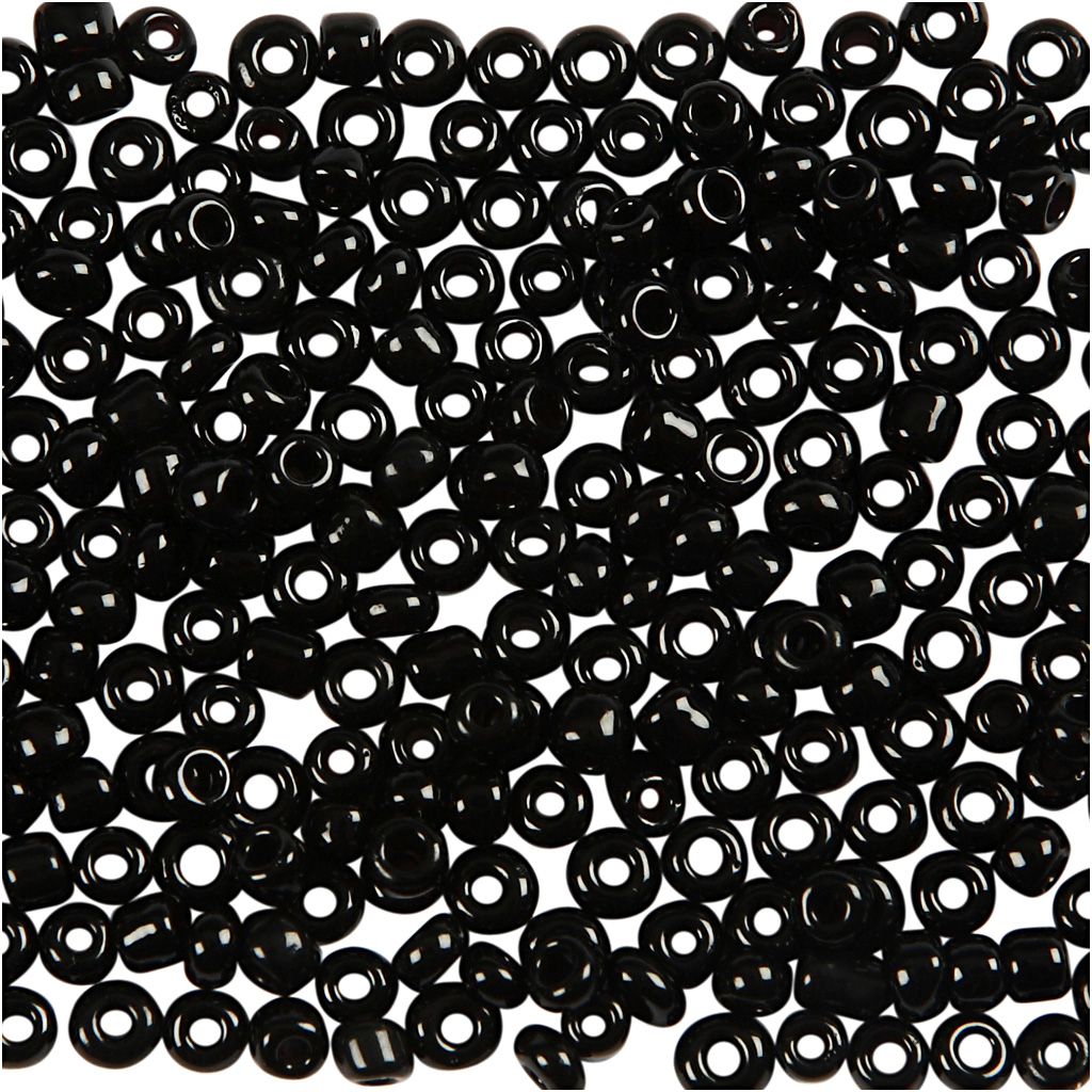Small, coloured glass beads that are great for homemade jewellery. Use them for necklaces, bracelets, earrings and more. Rocaille seed beads, black, size 12/0 , dia. 2 mm, hole size 0,8 mm, 25 g/ 1 pack