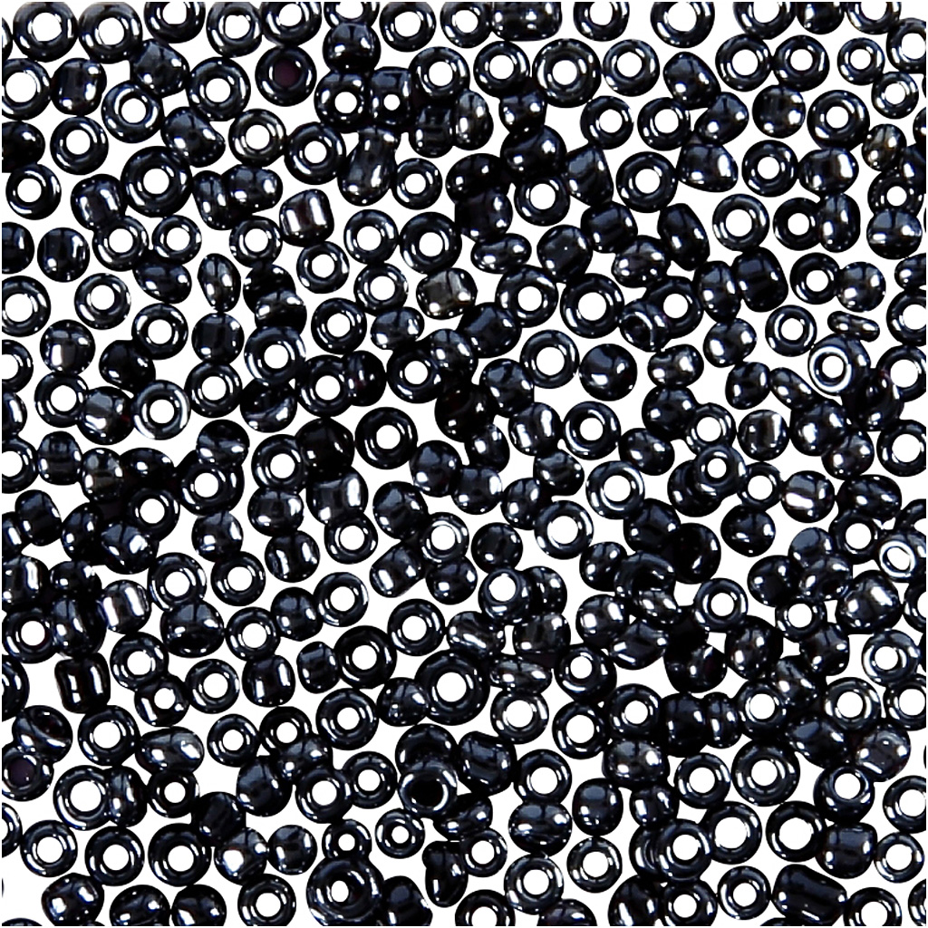 Small, coloured glass beads that are great for homemade jewellery. Use them for necklaces, bracelets, earrings and more. Rocaille seed beads, dark grey, size 15/0 , dia. 1,7 mm, hole size 0,5-0,8 mm, 25 g/ 1 pack