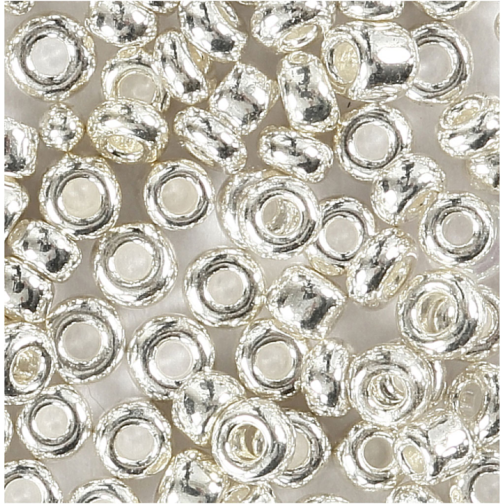 Round glass beads. Rocaille Seed Beads, silver metal, D 1,7 mm, size 15/0 , hole size 0,5-0,8 mm, 500 g/ 1 bag