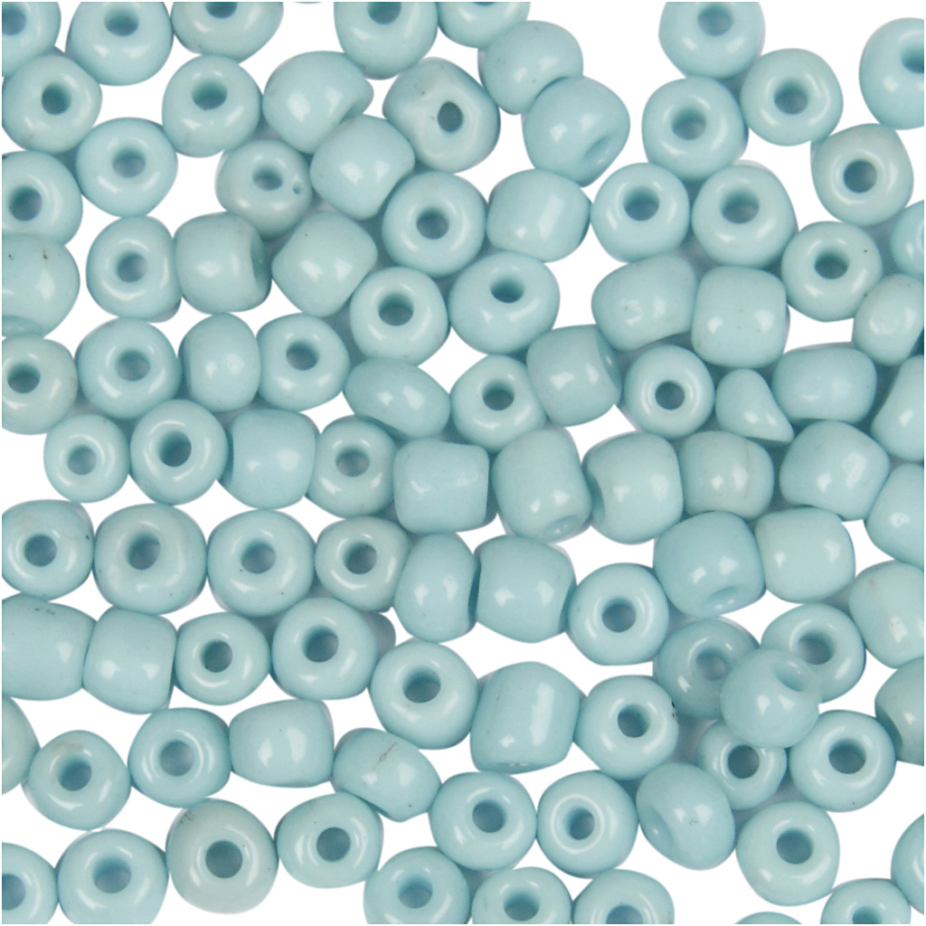 Small, coloured glass beads that are great for homemade jewellery. Use them for necklaces, bracelets, earrings and more. Rocaille seed beads, turquoise, size 8/0 , dia. 3 mm, hole size 0,6-1,0 mm, 25 g/ 1 pack