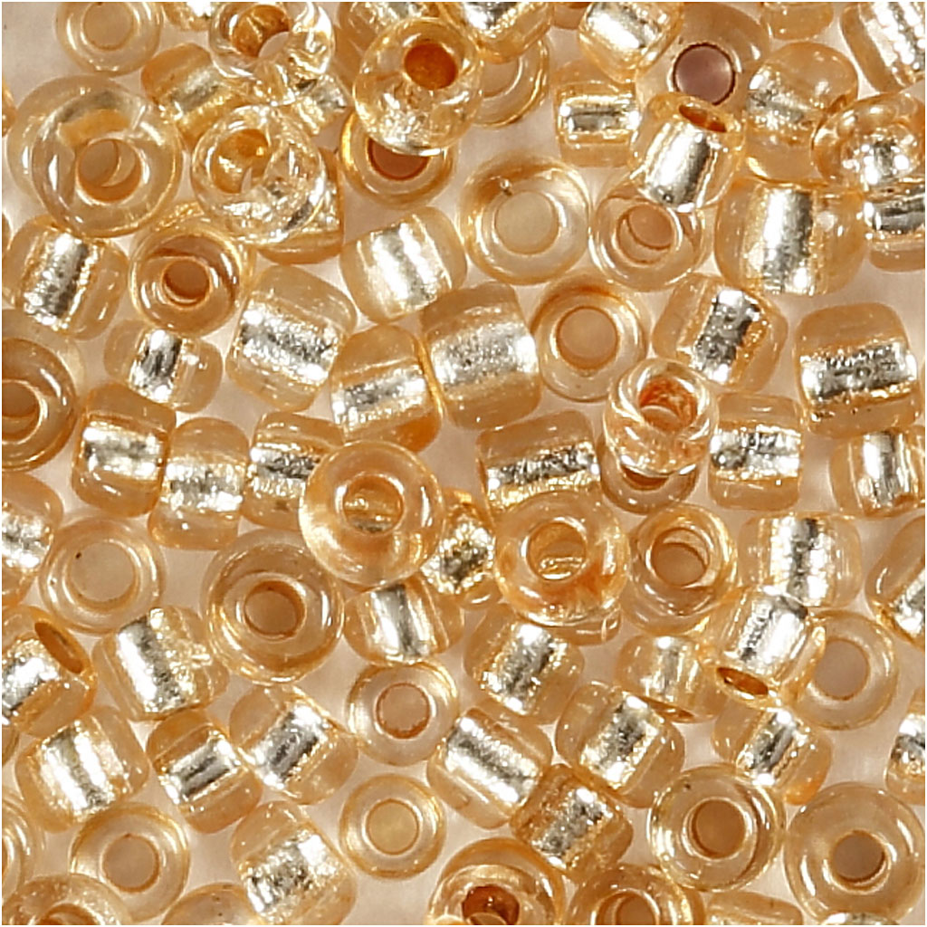 Small, coloured glass beads that are great for homemade jewellery. Use them for necklaces, bracelets, earrings and more. Rocaille seed beads, peach, size 15/0 , dia. 1,7 mm, hole size 0,5-0,8 mm, 500 g/ 1 bag