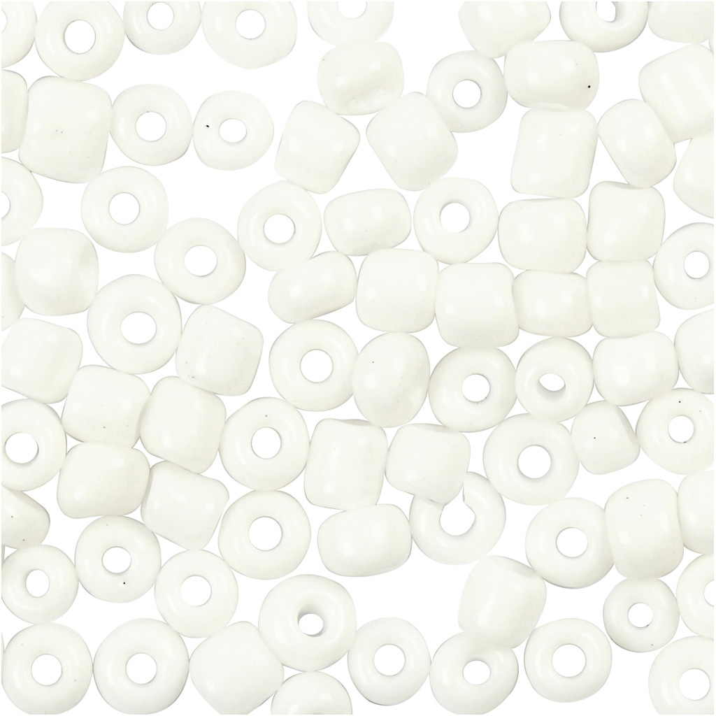 Small, coloured glass beads that are great for homemade jewellery. Use them for necklaces, bracelets, earrings and more. Rocaille seed beads, white, size 8/0 , dia. 3 mm, hole size 0,6-1,0 mm, 25 g/ 1 pack