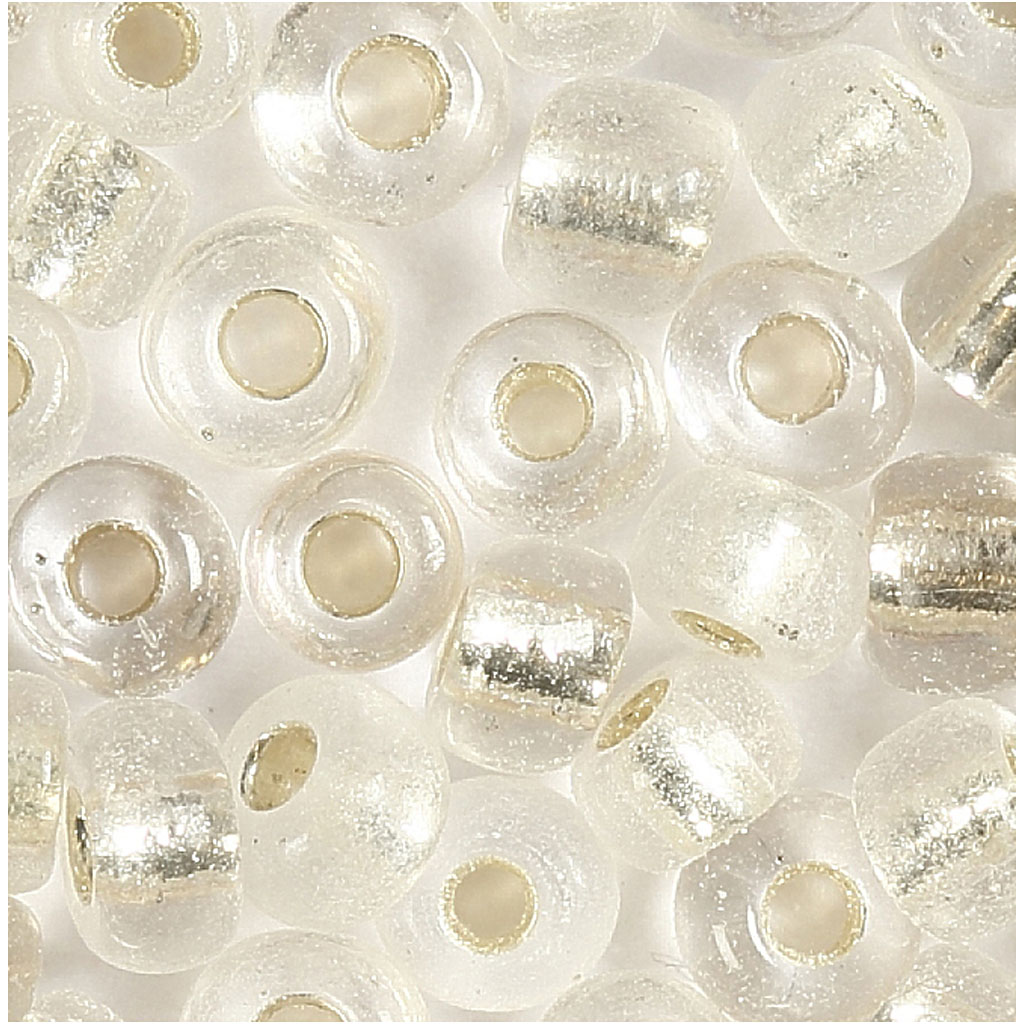 Round glass beads. Rocaille Seed Beads, silver, D: 3 mm, size 8/0 , hole size 0,6-1,0 mm, 500 g/ 1 pack