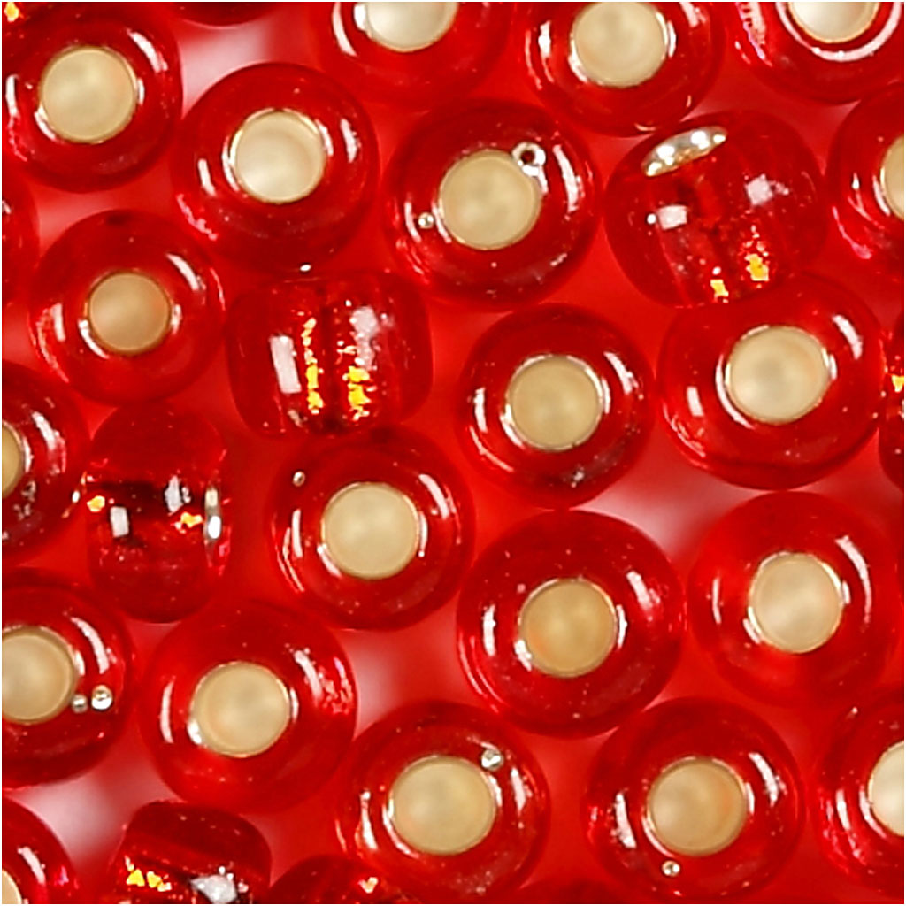 Small, coloured glass beads that are great for homemade jewellery. Use them for necklaces, bracelets, earrings and more. Rocaille seed beads, metallic red, size 8/0 , dia. 3 mm, hole size 0,6-1,0 mm, 500 g/ 1 pack