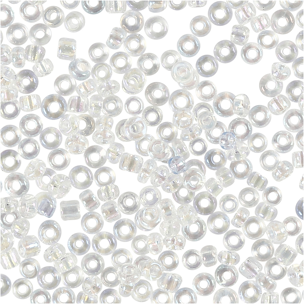Small, coloured glass beads that are great for homemade jewellery. Use them for necklaces, bracelets, earrings and more. Rocaille seed beads, clear, size 15/0 , dia. 1,7 mm, hole size 0,5-0,8 mm, 25 g/ 1 pack
