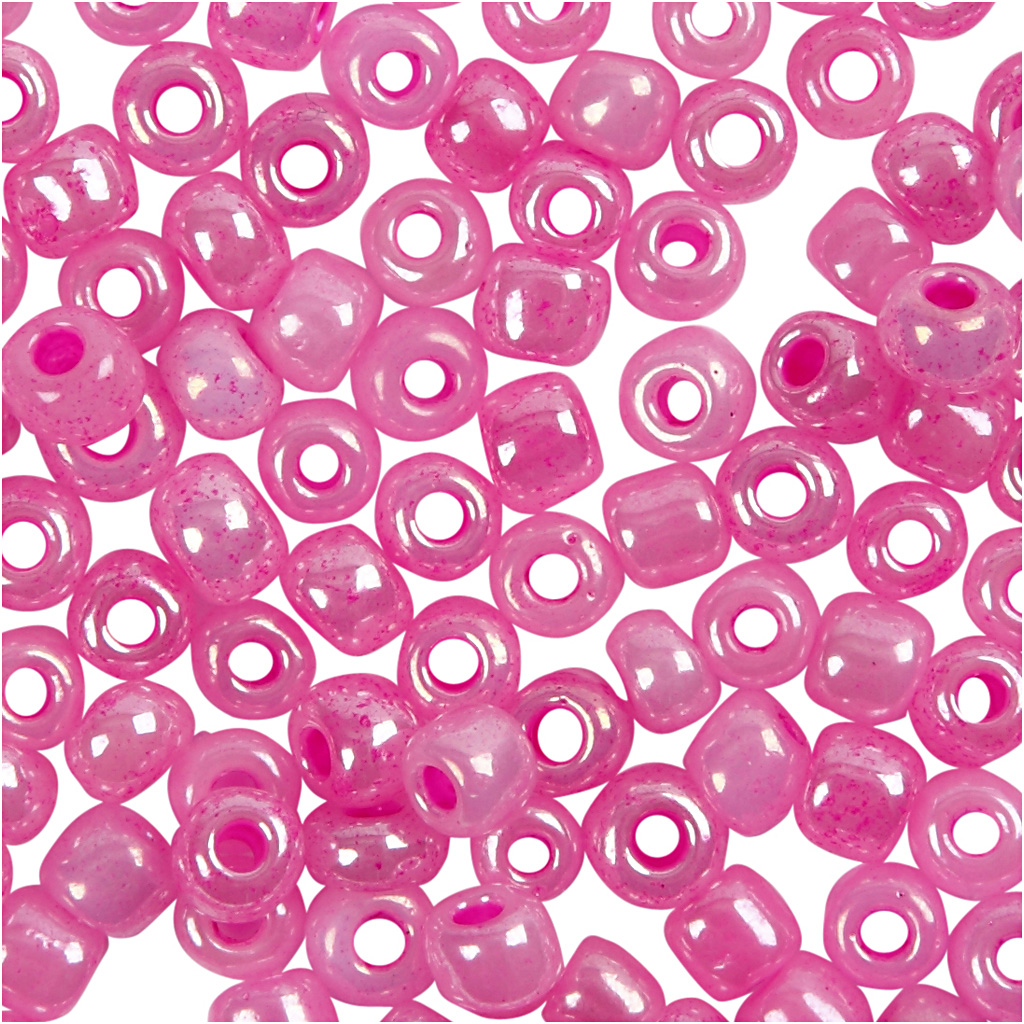 Small, coloured glass beads that are great for homemade jewellery. Use them for necklaces, bracelets, earrings and more. Rocaille seed beads, pink, size 8/0 , dia. 3 mm, hole size 0,6-1,0 mm, 25 g/ 1 pack