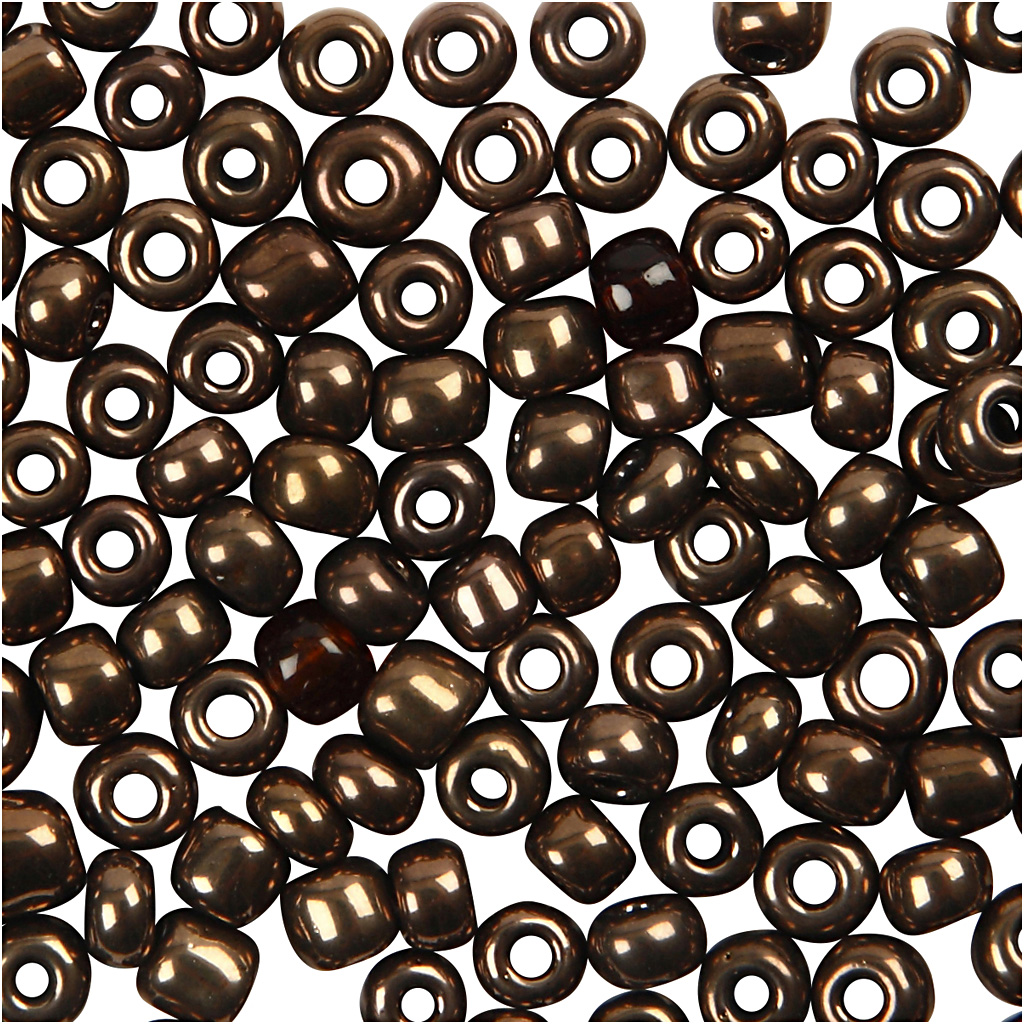Small, coloured glass beads that are great for homemade jewellery. Use them for necklaces, bracelets, earrings and more. Rocaille seed beads, bronze, size 8/0 , dia. 3 mm, hole size 0,6-1,0 mm, 25 g/ 1 pack