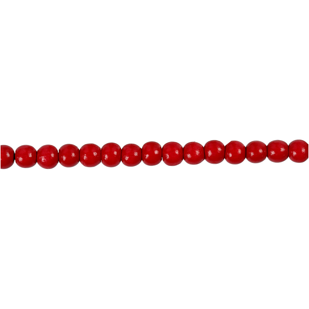Beads made of wood. Wooden Beads, red, dia. 5 mm, hole size 1,5 mm, 6 g/ 1 pack