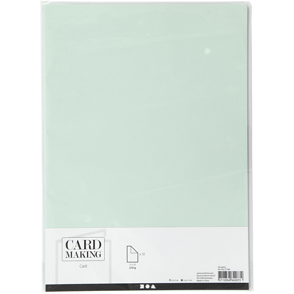 Popular premium card in separate colours. Card, pastel green, A4, 210x297 mm, 210 g, 10 sheet/ 1 pack