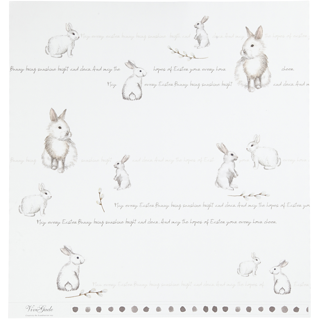 Exclusive paper with a different print on each side in a design from Vivi Gade. Design Paper, bunny, 30,5x30,5 cm, 180 g, 5 sheet/ 1 pack