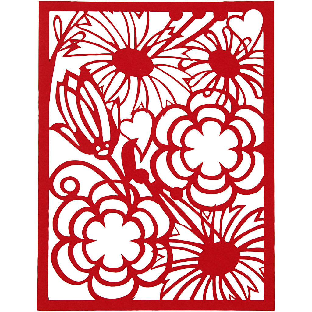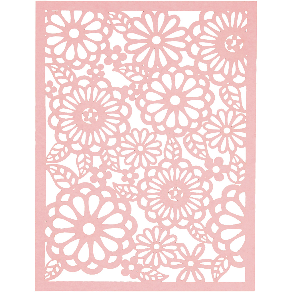 An assortment of lasercut cardboard with fine detailed lace patterns. Pre-prepared for card-making and scrapbooking. A pad with a total of 24 sheets in 6 different lace designs and 4 different colours. There may occur dark shadows due to the producti. Pad with Cardboard Lace Patterns, orange, pink, red, rose, A6, 104x146 mm, 200 g, 24 pc/ 1 pack