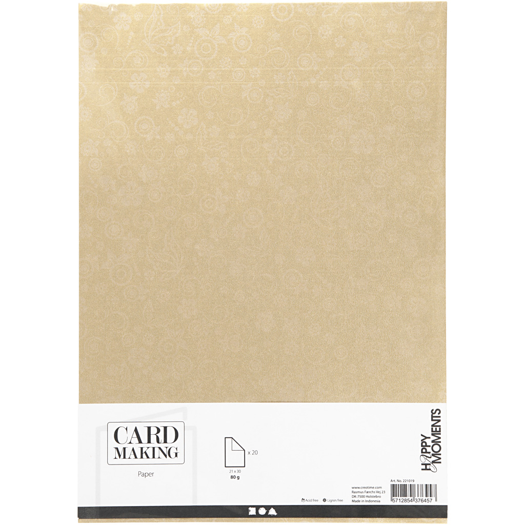 Glossy paper with a faint silver print pattern. Paper, gold, A4, 210x297 mm, 80 g, 20 sheet/ 1 pack
