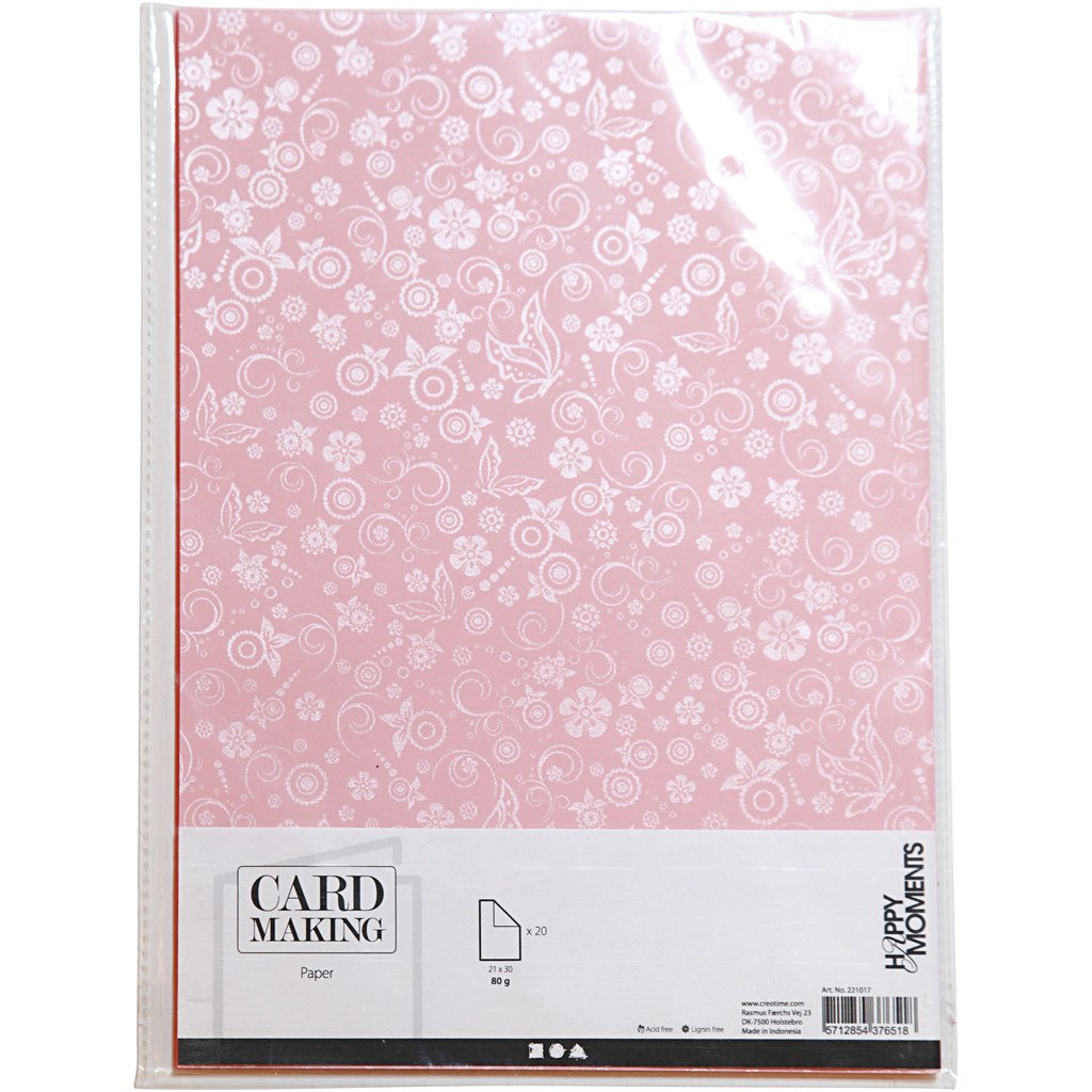 Glossy paper with a faint silver print pattern. Paper, light red, A4, 210x297 mm, 80 g, 20 sheet/ 1 pack