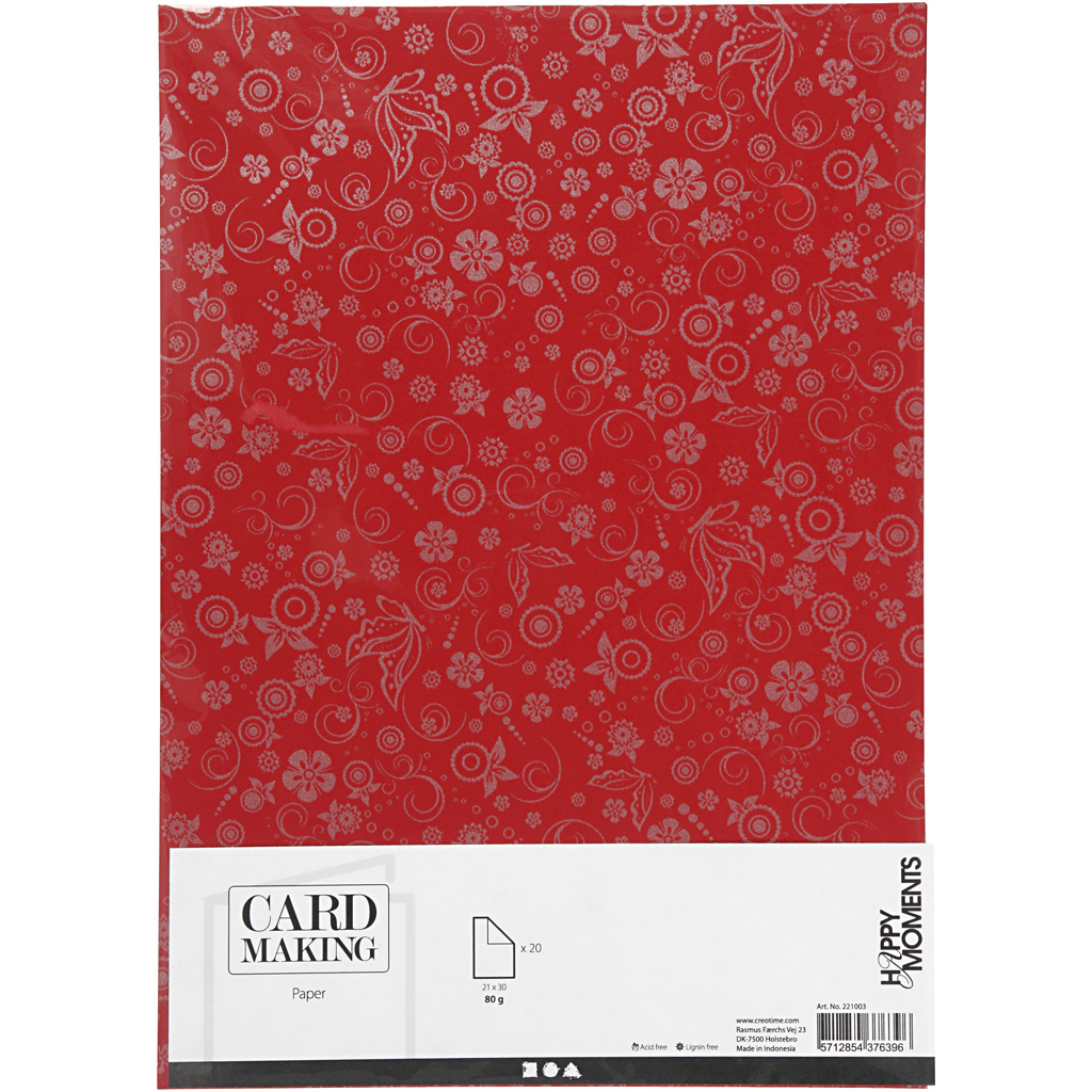 Glossy paper with a faint silver print pattern. Paper, red, A4, 210x297 mm, 80 g, 20 sheet/ 1 pack