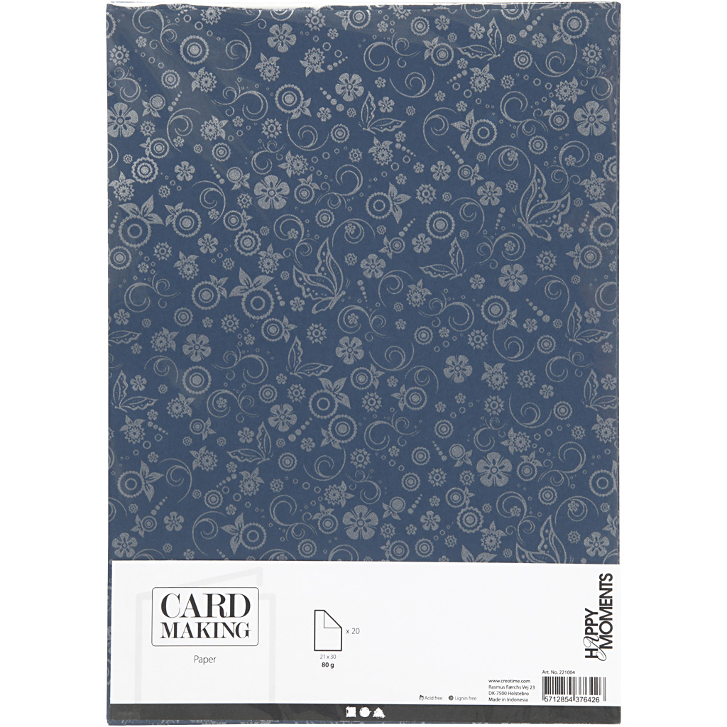 Glossy paper with a faint silver print pattern. Paper, blue, A4, 210x297 mm, 80 g, 20 sheet/ 1 pack