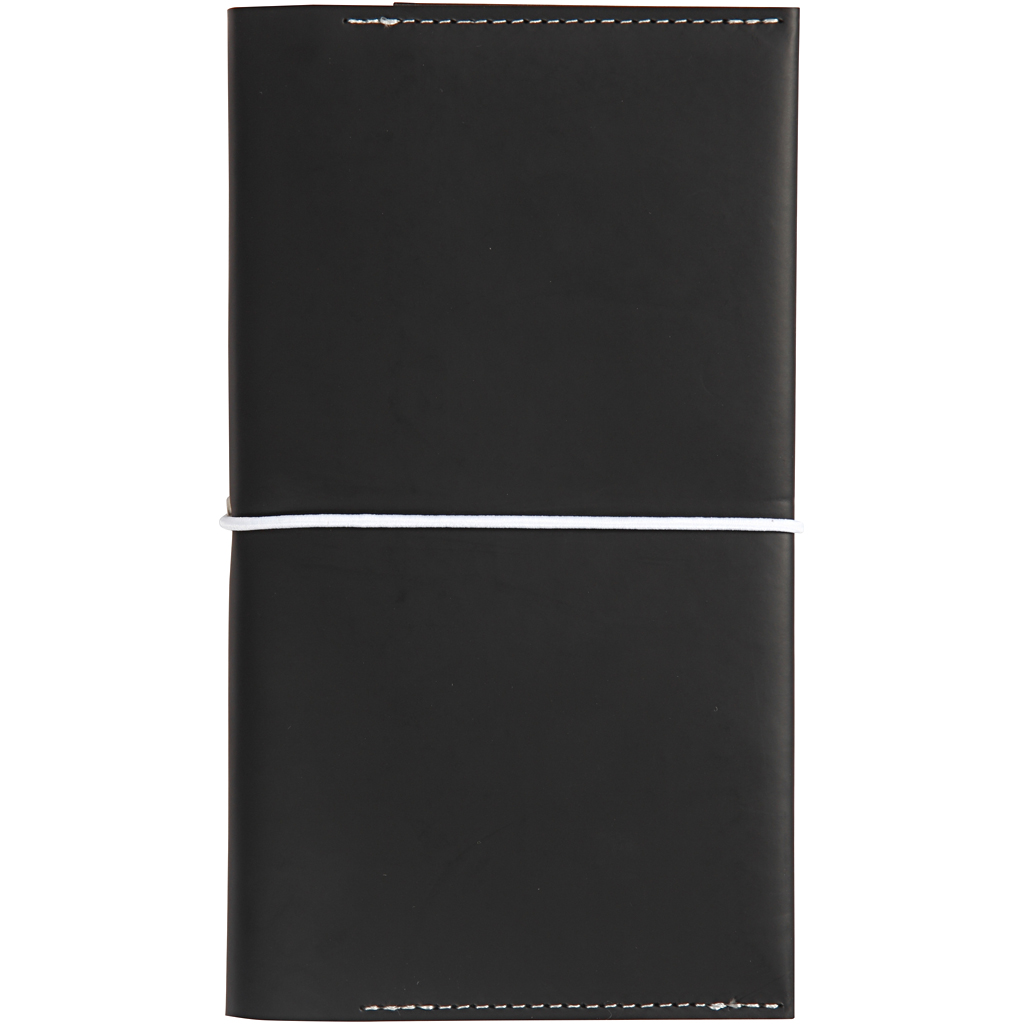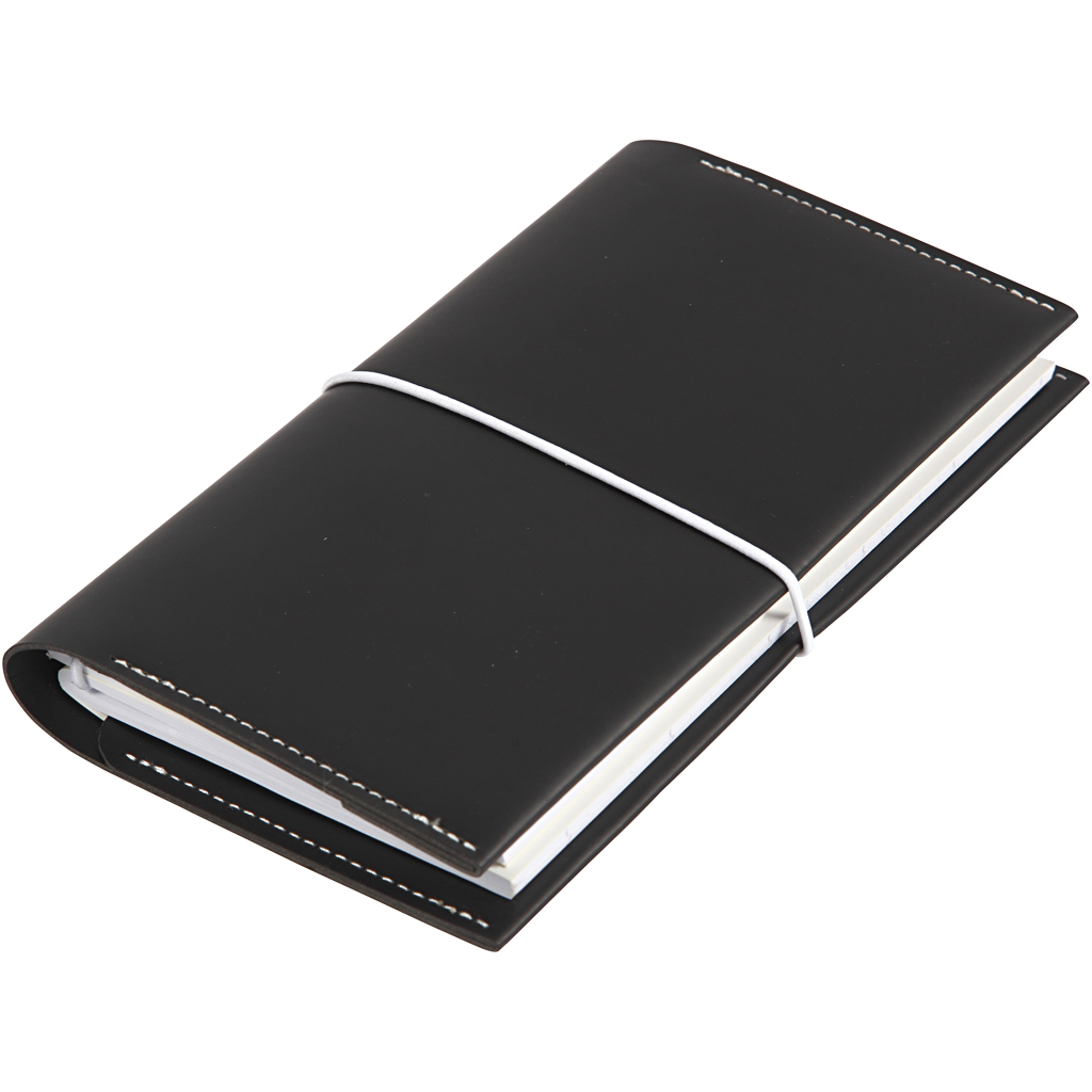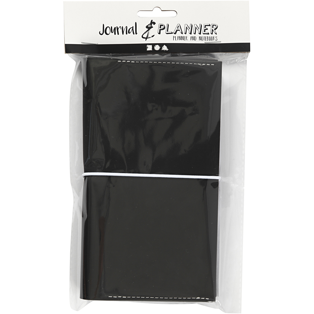 Calendar with elastic closure and two notebooks for travelling- and creative journal. Possibility of inserting several notebooks. Contents: Calendar folder, weekly leaflet (34 pages), dot / dots notebook (32 pages). The weight of paper is 100 g / m2. Planner, black, size 10x18x1,5 cm, elastic closure, 1 pc